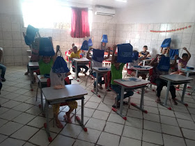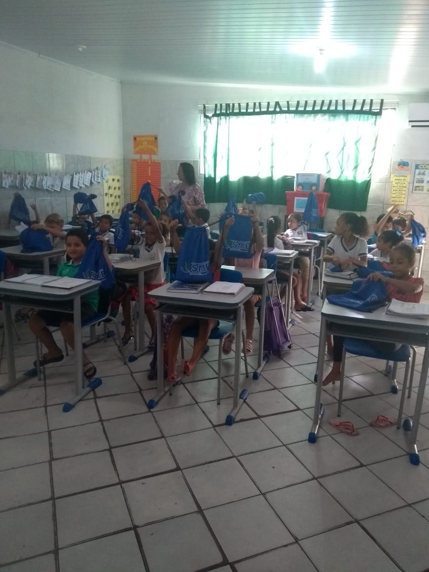 Uma das escolas atendidas pela distribuição dos kits foi a Escola Municipal Virgília Cordeiro Guedes, onde as crianças ficaram contentes pelo recebimento do material que tem o objetivo de suprir as necessidades dos mesmos quanto às tarefas escolares.