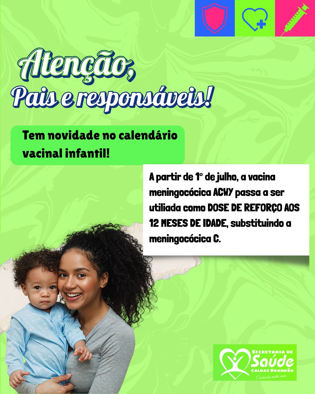 A Prefeitura Municipal de Caldas Brandão, localizada no interior do Agreste paraibano, por meio da Secretaria Municipal de Saúde, que tem à frente a secretária Sabrina Rolim, comunica à população que o calendário vacinal infantil foi atualizado, conforme recomendação do Ministério da Saúde.